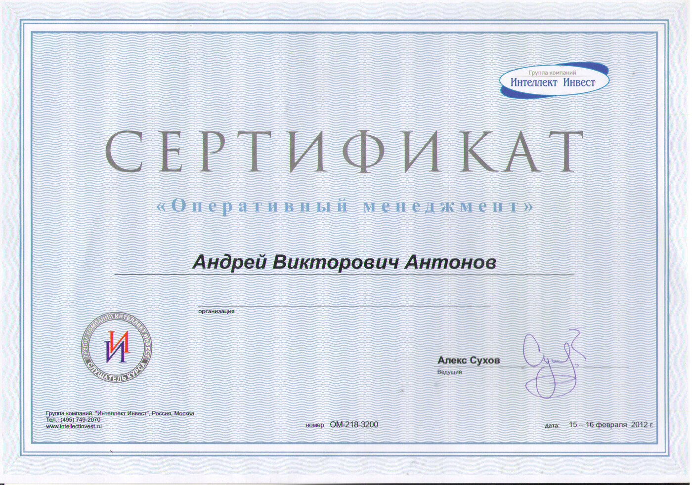 Семинар: «Оперативный менеджмент». (Сертификат №:ОМ-218-3200).